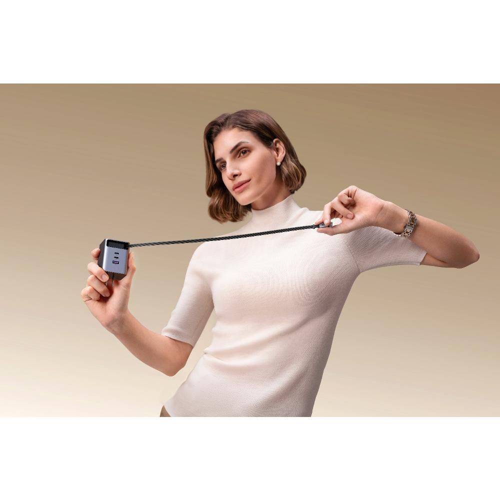 Ugreen 100W GaN 2xUSB-C/USB-A se zatahovacím kabelem