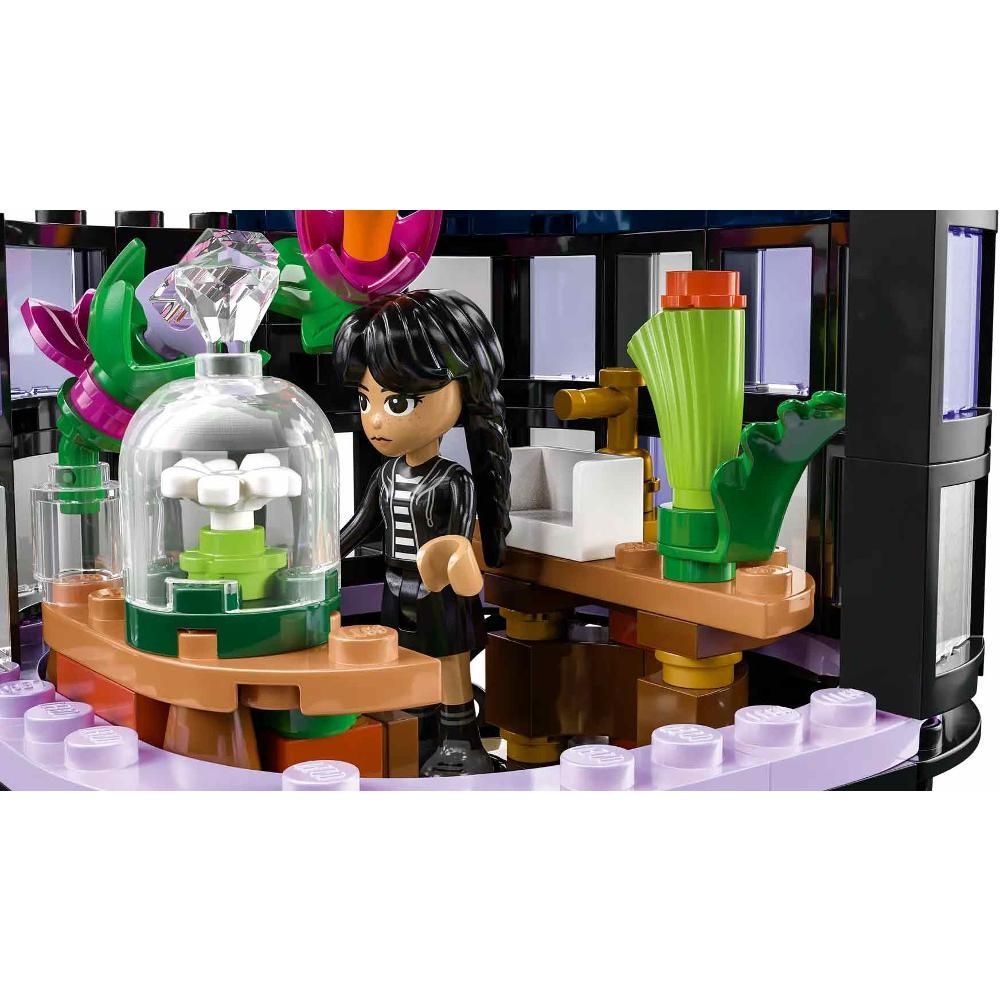 Zamkněte stavebnici černou jiřinou a po otevření odhalte propracovaný interiér z televizního seriálu Wednesday na nekonečné vyprávění