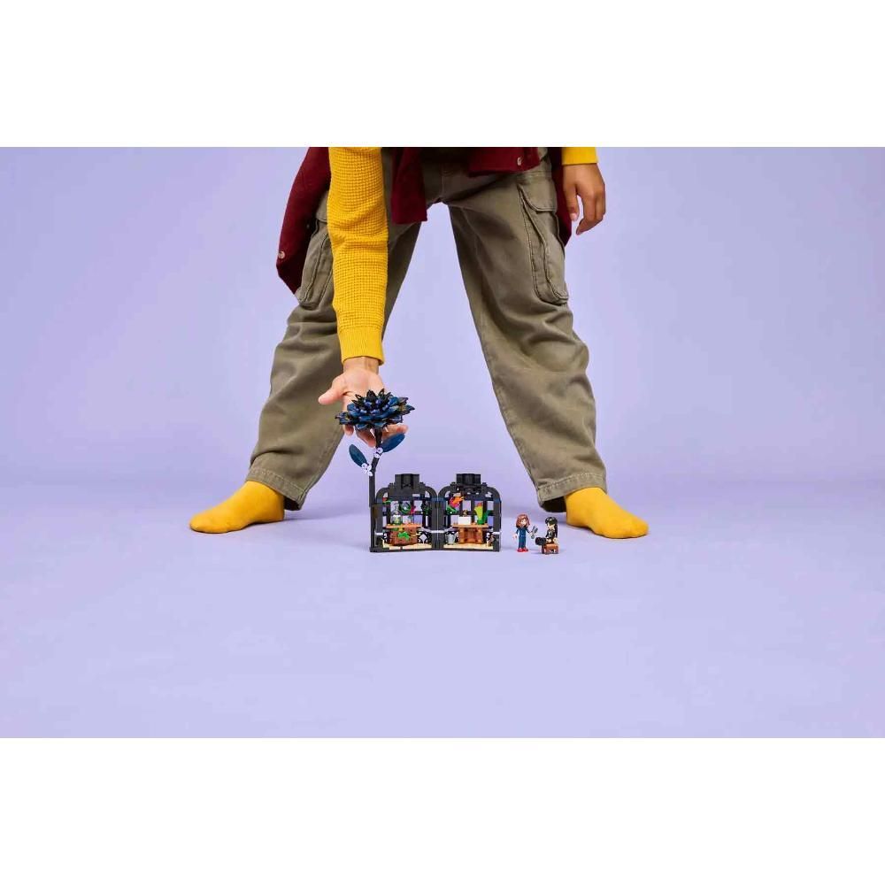 Součástí designové stavebnice je černá jiřina z kostek LEGO®, která slouží jako zámek vázy, která obsahuje malá okna zimní zahrady, prostor na hraní uvnitř, nábytek a další prvky