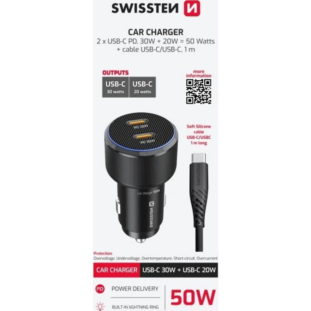Adp. 2xUSB-C PD 50W+Kabel USB-C SWISSTEN