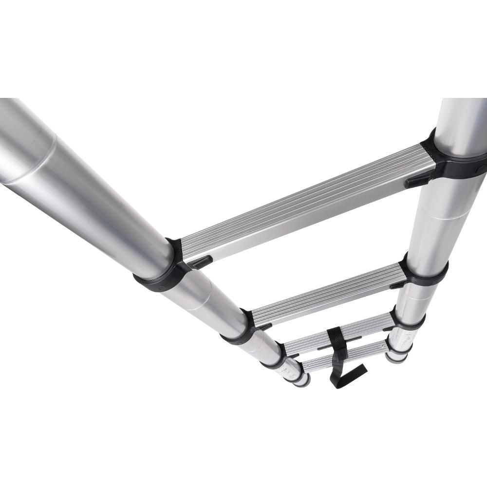 Jednoduše vysunete jen takový počet stupňů, který je aktuálně potřeba. Žebřík má celkem 13 příček s maximální délkou 3,8 m a nosnost 150 kg. Rozteč příček je 29 cm. Také je velmi nenáročný na skladování. Ve složeném stavu má rozměry 87 × 48 × 9 cm.