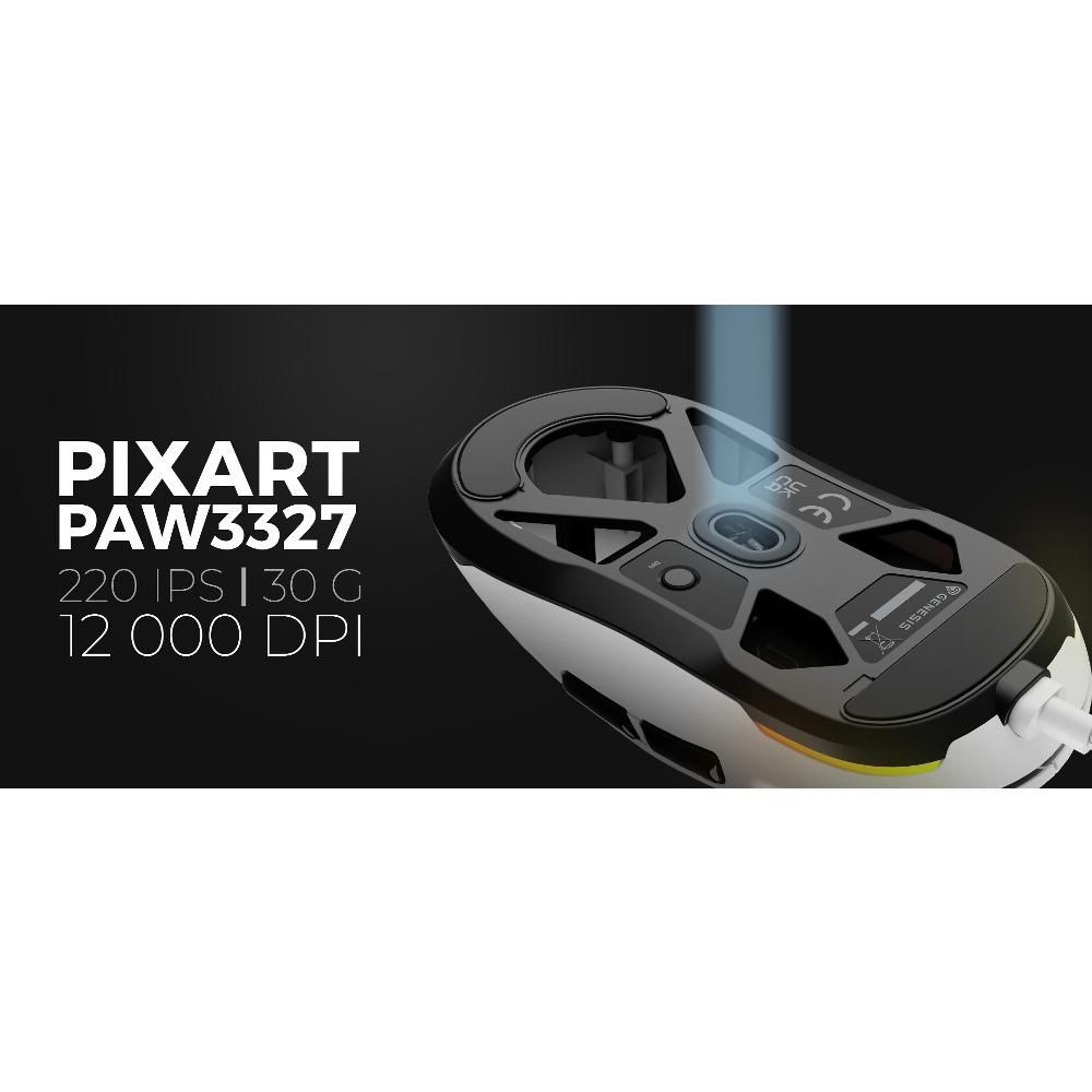 Nekvalitní snímač je prvek, který může zničit hraní v nejméně vhodnou chvíli. S GENESIS Krypton 660 můžete zapomenout na jakékoli anomálie, které by ji mohly narušit. PAW3327 je absence jevů kladného a záporného zrychlení a ztráty sledování i při pohybech o rychlosti 220 palců za sekundu a zrychlení 30 G. Přesné sledování - milimetr po milimetru - znamená, že si můžete být jisti, že porážka soupeře bude záviset pouze na vašich vlastních schopnostech.