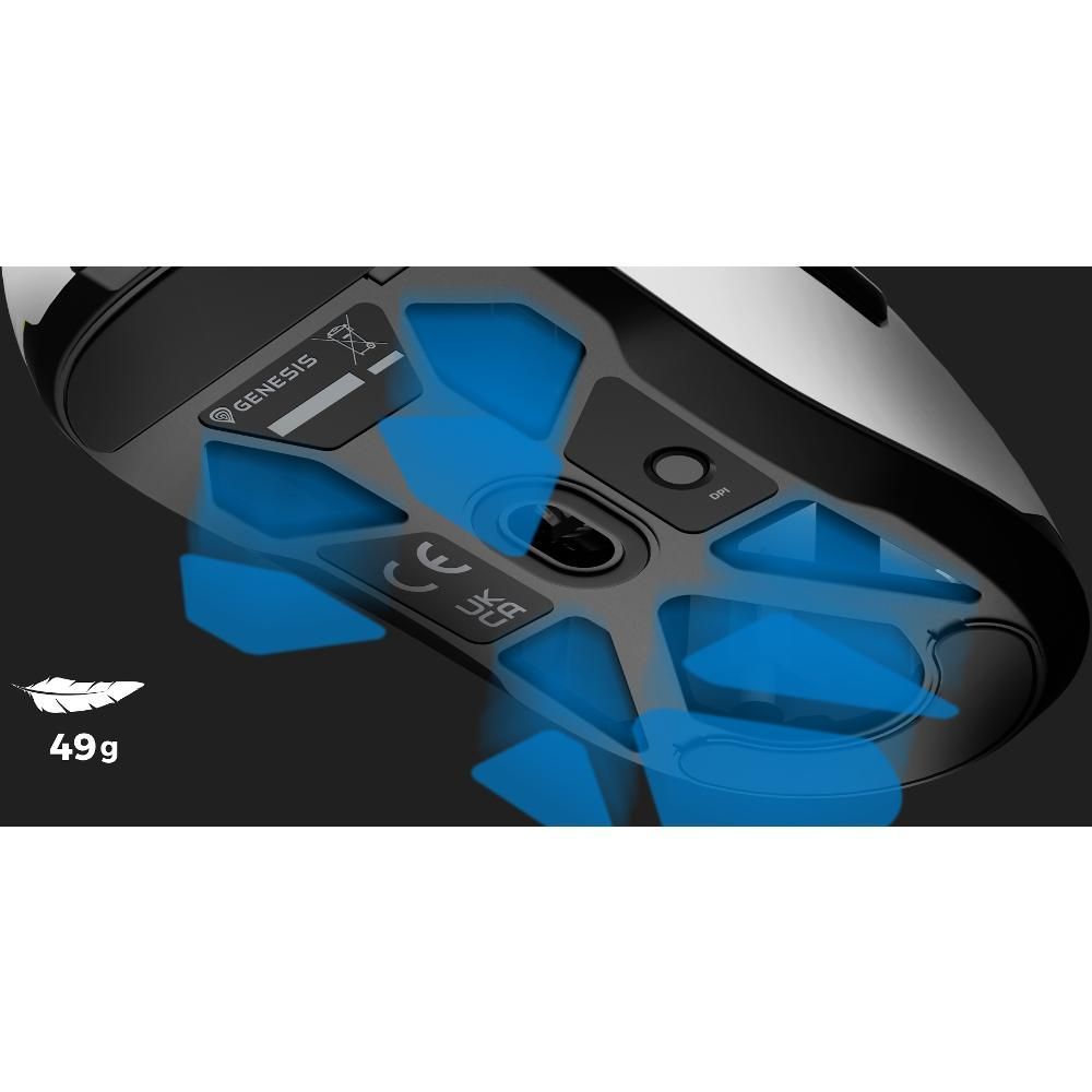 Hrajete s nízkou citlivostí a často zvedáte myš? Nebo prostě jen oceňujete design, který vám umožňuje rychlejší reakce a neunavuje vás po dlouhém sezení? Ať už patříte do kterékoli skupiny, myš GENESIS Krypton 660 splní vaše očekávání. Její hmotnosti (49 gramů) jsme dosáhli promyšleným výběrem materiálů, použitím lehkého kabelu Paracord a jedinečnými výřezy přítomnými na spodní straně. Díky tomu všemu můžeme myš GENESIS Krypton 660 hrdě označit za jednu z nejlehčích myší na trhu.