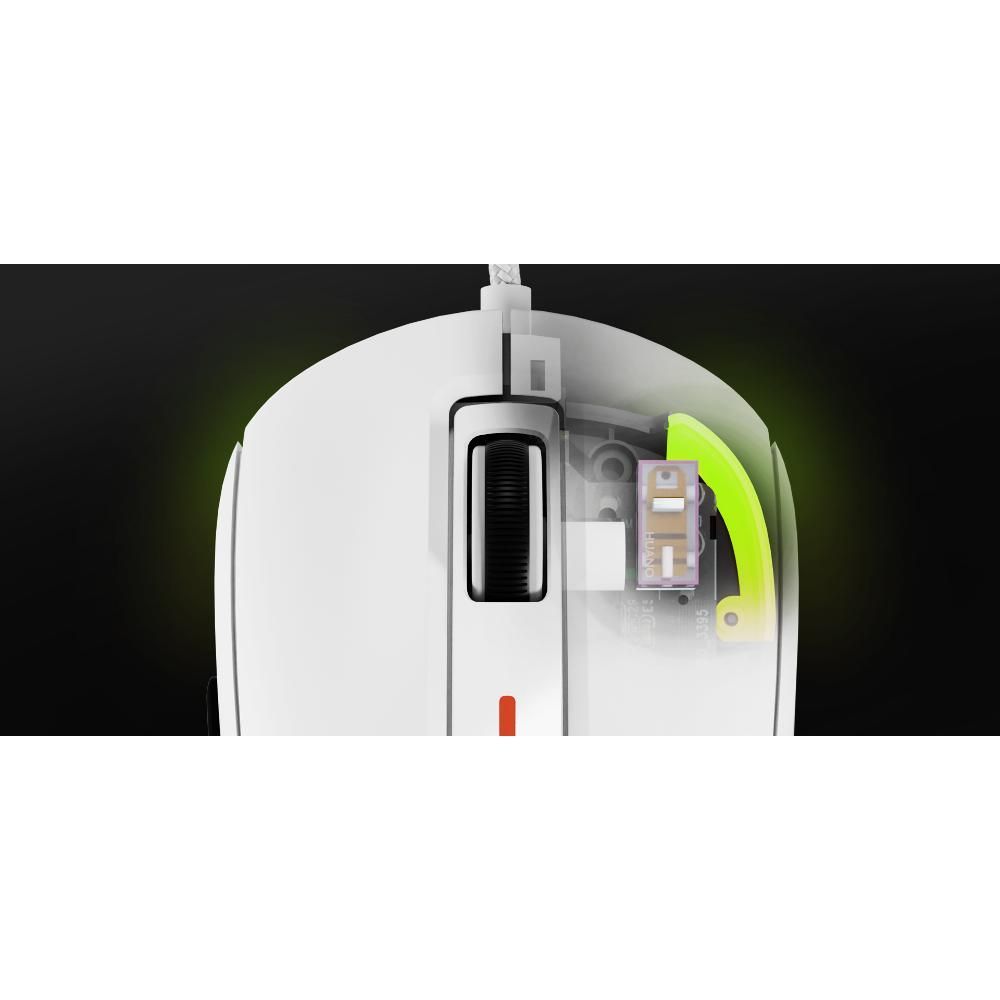 Vysoká kvalita zpracování - to je výsledek použití kvalitních materiálů, ale také nejkvalitnějších komponentů. Mezi nimi najdete mechanické mikrospínače Huano Purple vyznačující se znatelným a velmi dynamickým kliknutím, výdrží až 90 milionů kliknutí a mírnou tlakovou silou (60 g), stejně jako odolný a mnohými oceňovaný snímač TTC White s vnímatelným posuvným zdvihem. Nezanedbatelné jsou i kvalitní teflonové posuvníky. Plynulý pohyb na více površích? Od nynějška žádný problém.