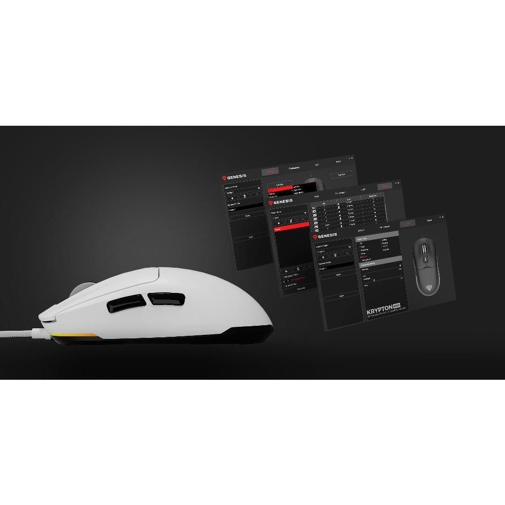 Přivítejte jednu z nejlehčích drátových myší na trhu. Pohleďte na myš GENESIS Krypton 660 - konstrukci vážící pouhých 49 gramů, která vám umožní reagovat ještě rychleji. Pomůže vám také ohebný kabel Paracord a optický snímač PAW3327 schopný sledovat pohyby rychlostí až 220 palců za sekundu. Jako by to nestačilo, GENESIS Krypton 660 se stará také o pohodlí a funkčnost prostřednictvím specializovaného softwaru. Seznamte se s ním blíže a zjistěte, čím vás ještě překvapí.