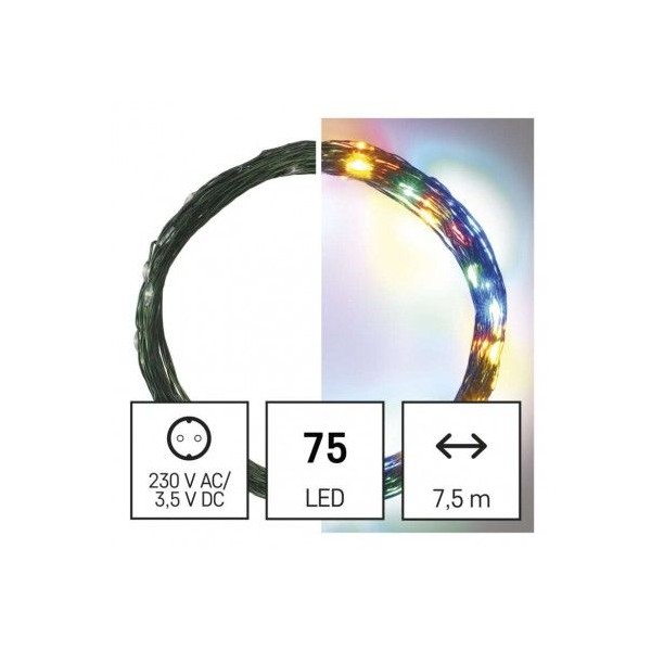 LED vánoční nano řetěz zelený, 7,5 m, venkovní i vnitřní, multicolor, časovač