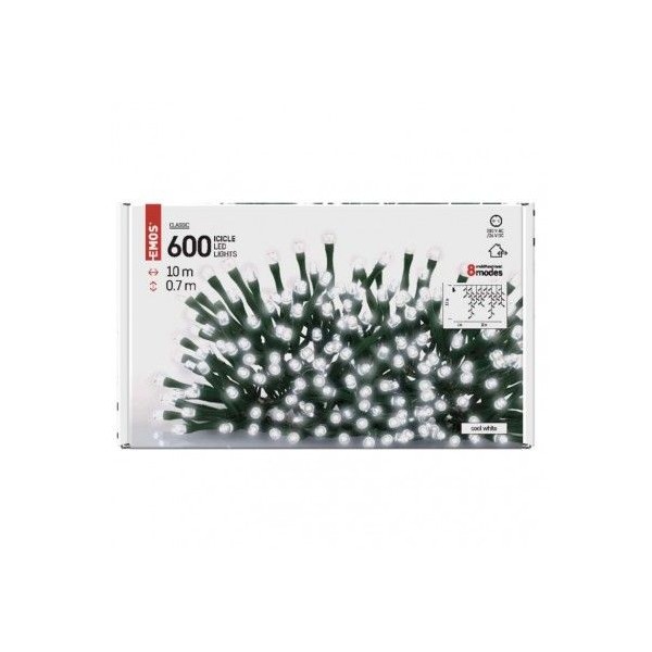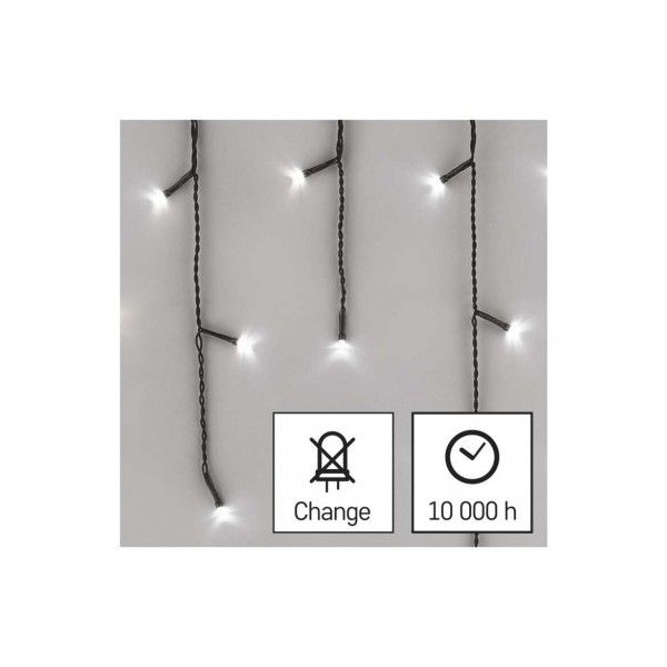 LED vánoční rampouchy, 10 m, venkovní i vnitřní, studená bílá, programy