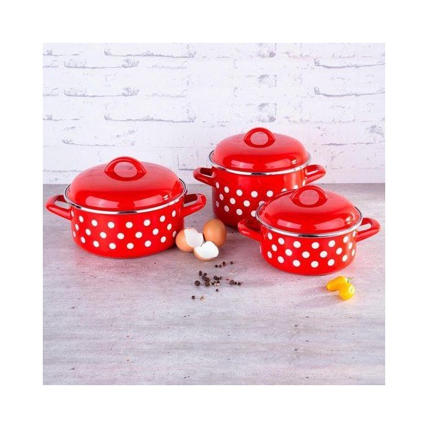 Nabízíme Vám nestárnoucí klasiku na trhu se smalovaným nádobím - červené smaltované nádobí s bílým puntíkem. Jedná se o dekor, který je nadčasový a své místo v českých domácnostech nachází již desítky let. O oblíbenosti dekoru svědčí i šíře sortimentu, kterou Vám u těchto výrobků nabízíme. S našimi puntíky tedy můžete pořídit téměř kompletní řadu nádobí, která Vám díky své vysoké kvalitě vydrží sloužit po dlouhá léta.