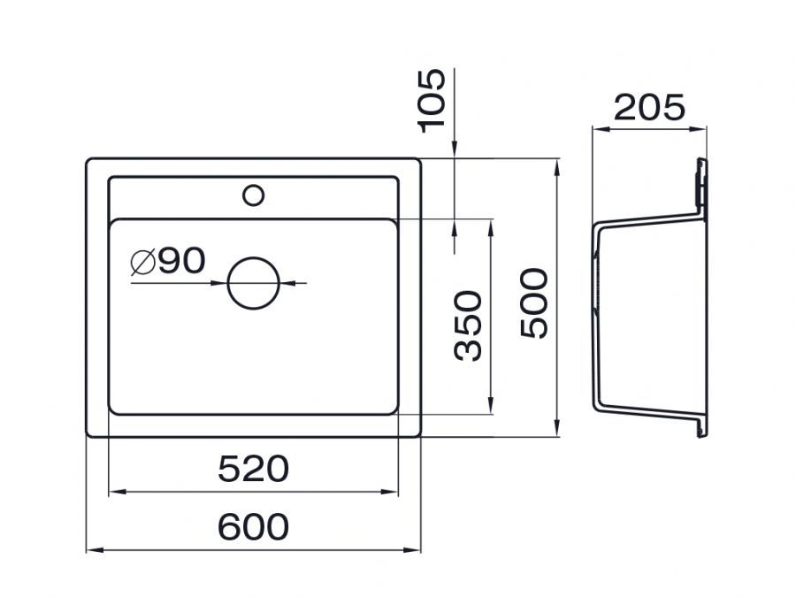 (10931) > Metalac Inko, dřez X GRANIT QUADRO 60, otvor pro baterii, 600 x 500 mm, průměr 90 mm pro sifon, tl. 12 mm (béžový), včetně sifonu