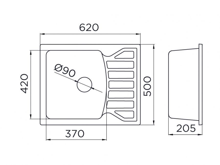 (10835) > Metalac Inko, obdélníkový dřez X GRANIT QUADRO M, 620 x 500 mm, průměr 90 mm pro sifon, tl. 12 mm (šampaň), včetně sifonu