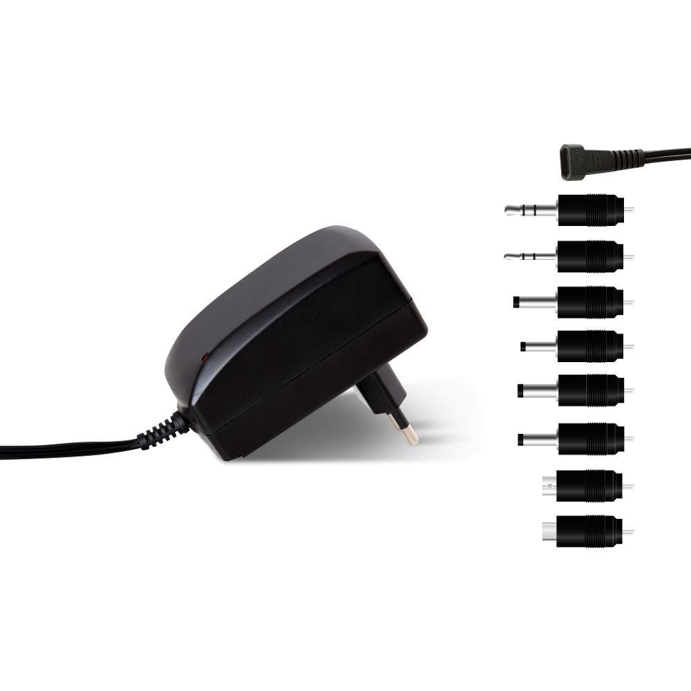 Vhodný pro digitální zařízení např.: přenosná rádia, modemy, nabíjecí svítilny, antény a set-top boxy, přenosné DVD přehrávače a další s odběrem až 1000 mA. Až 7 možností nastavení výstupního napětí od 3 V do 12 V."
