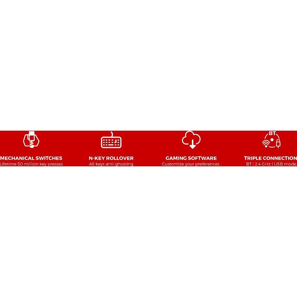 Přivítejte GENESIS Thor 660 G2. Kompaktní klávesnice, která vám poskytne vše, co potřebujete pro hraní i práci. Trojitý režim připojení (spolu s technologií RapidSpeed), možnost připojení až 4 zařízení současně, více než 80 hodin hraní na jedno nabití a ještě plynulejší výkon díky předmazaným stabilizátorům - a to je jen začátek.