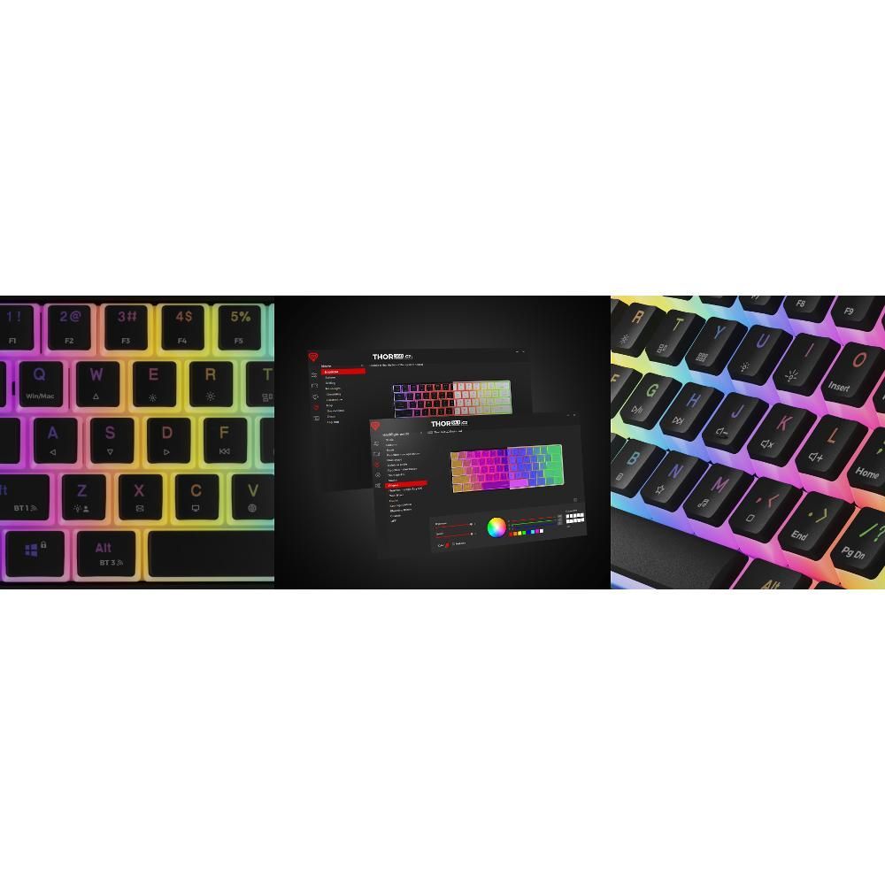Při navrhování modelu GENESIS Thor 660 G2 jsme věděli, že kvalita konstrukce je víc než jen použití kvalitních materiálů. Proto jsme GENESIS Thor 660 G2 vybavili řadou funkcí, které pozitivně ovlivní váš herní zážitek. Počínaje neplovoucí konstrukcí, která snižuje chrastění kláves, přes mazané kvalitní stabilizátory, díky nimž budou klávesy pracovat nejen hladčeji, ale také tišeji, až po odolné krytky Pudding PBT , které propouštějí mnohem více světla. Nic na klávesách GENESIS Thor 660 G2 není náhodné.